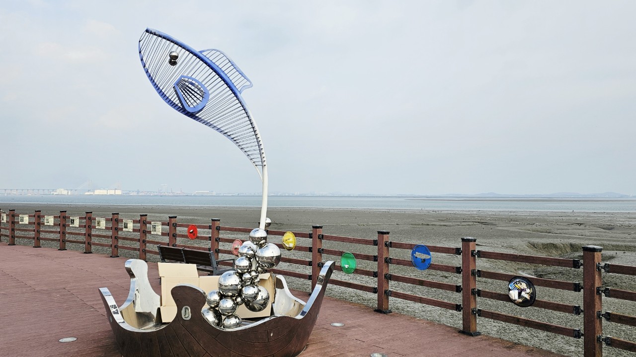 잠시 벤치에 앉아 간식을 먹으며 다리 쉼을 하고, 삽교호 해안탐방로 테크길을 따라 맷돌포구로 향한다.