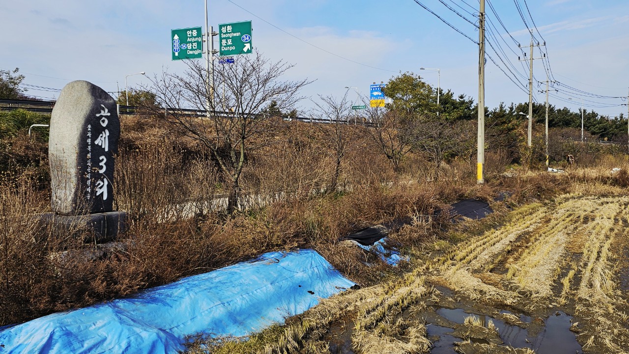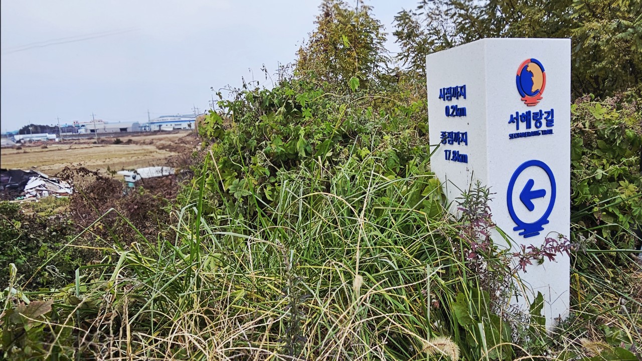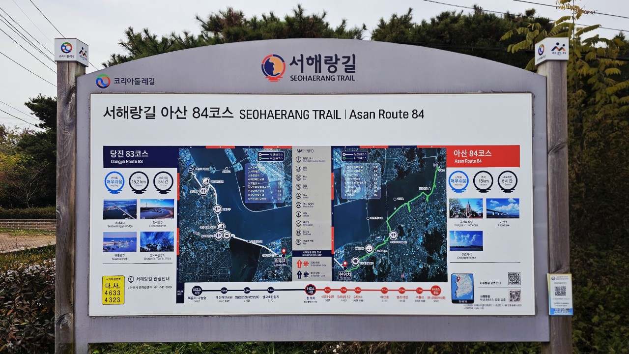 인주공단교차로에 이르자 서해랑길 아산 84코스를 알리는 안내판이 묵묵히 길목을 지키고 서 있다. 낯선 풍경 속에서 만나는 안내판은 여행자의 마음을 편안하게 붙잡아준다.