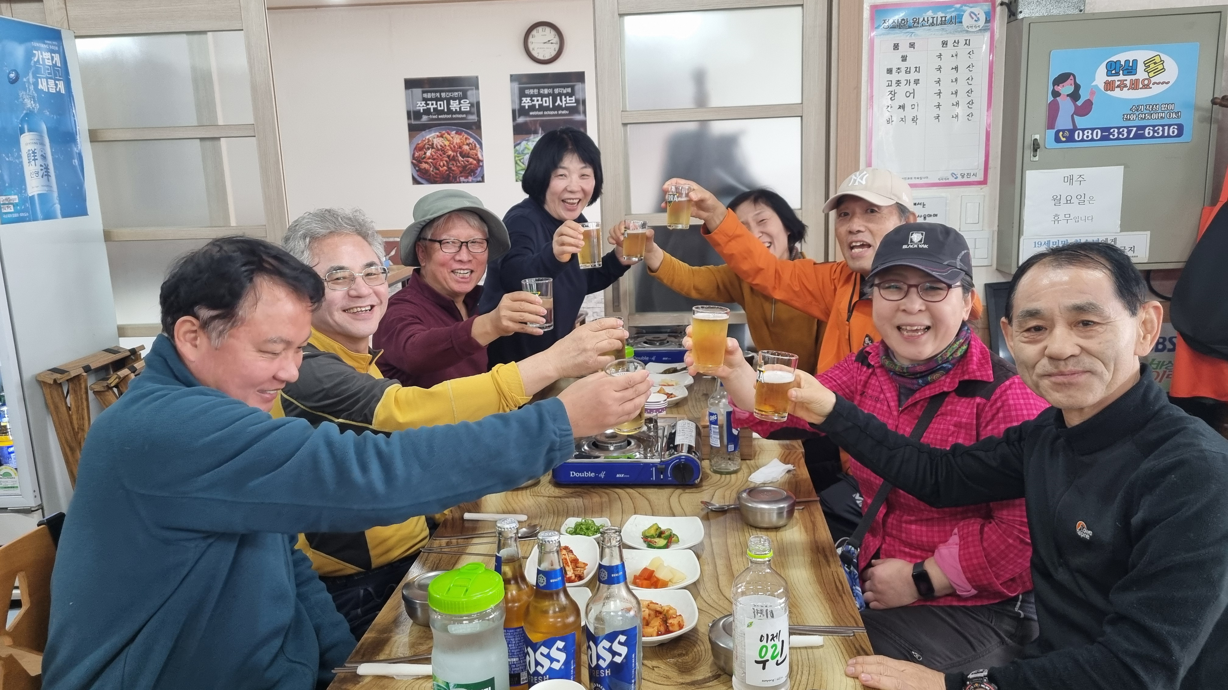 지난번 걸음을 멈춘 맷돌포구에 도착하여 오늘 트레킹을 마무리하고 '혜주네 맛집'에서 뒤풀이를 한다.