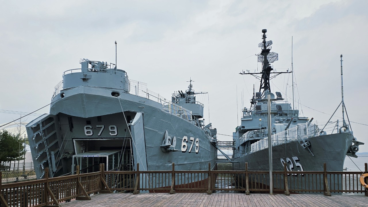 삽교호함상공원 야외광장에는 상륙함, 구축함, 수륙양용 장갑차와 해상초계기, 함포 등 다양한 전시물들이 눈을 즐겁게한다.