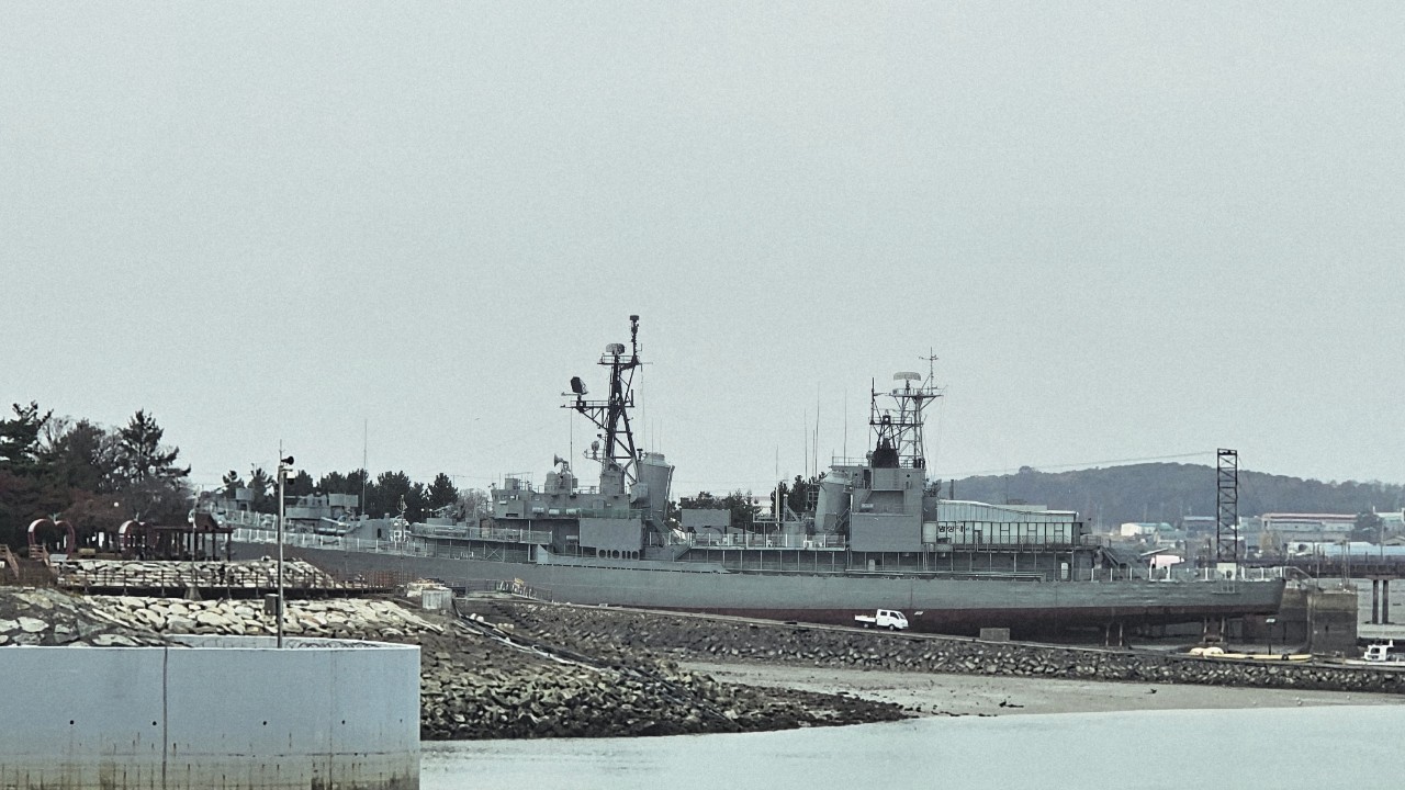 방조제 끝 삽교호 배수갑문을 지나 공도교를 건너자 함상해상공원의 군함이 눈에 들어온다.