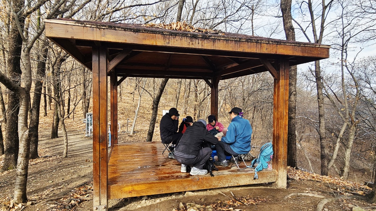 정상 조금 못미쳐 쉼터 정자에서 점심상을 편다. 추워서 밥 생각이 없었는데 쪽빛님이 건네 따뜻한 슝늉이 마음까지 따뜻하게 한다.