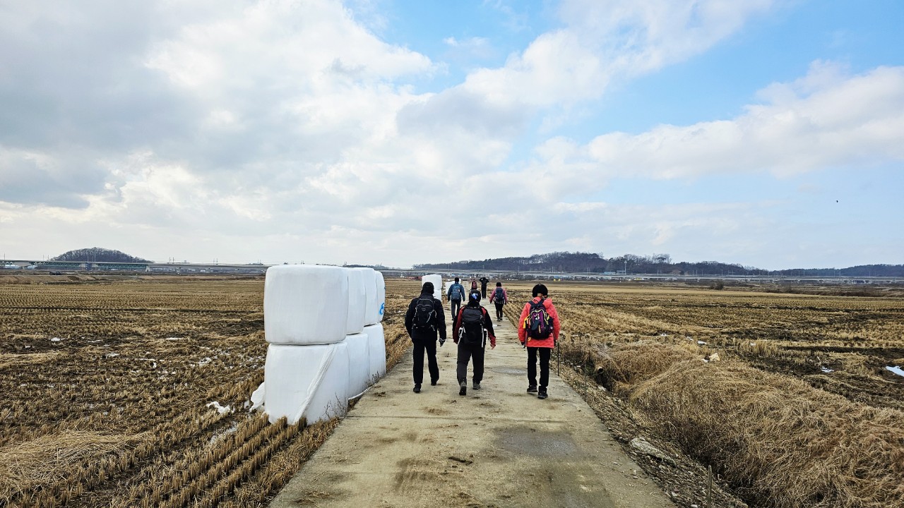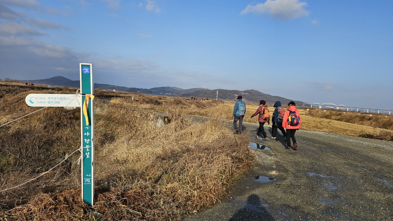 2025. 12. 14(일) 서해랑길 84~85구간(16.9km) : 구성리 2리 마을회관-(3.7km)-쌀 조개섬 입구-(2.8km)-노양마을회관 버스 정류장-(1.5km)-평택국제대교-(8.9km)-평택호 예술공원 주차장