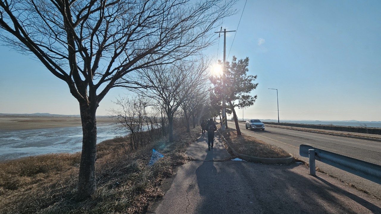 혹한의 날씨에도 아랑곳하지 않고 서해랑길을 나선 회원들로 버스는 거의 만석이다. 매서운 추위보다 길을 걷고 싶다는 마음이 먼저였던 사람들이다. 두툼한 외투 속에 숨은 설렘이 버스 안 공기를 은근히 데운다.