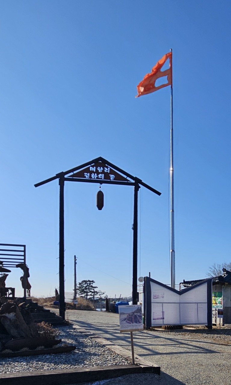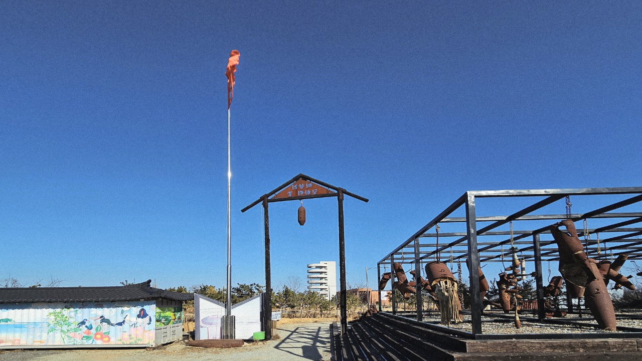 매향리 평화 생태공원 안쪽으로 들어서자, 평화의 종이 눈에 들어온다. 높이 매달린 종은 쉽게 울리지 않는다. 총성과 폭음으로 얼룩졌던 시간을 기억하고, 다시는 그런 소리가 반복되지 않기를 바라는 마음으로 세워진 종이다. 바람이 스치며 종을 살짝 흔들 때마다, 들릴 듯 말 듯한 울림이 마음속 깊은 곳을 건드린다. 매향리에 붉은 깃발이 게양이 되면 이 곳 주민들의 일상은 멈춰야만 했다.