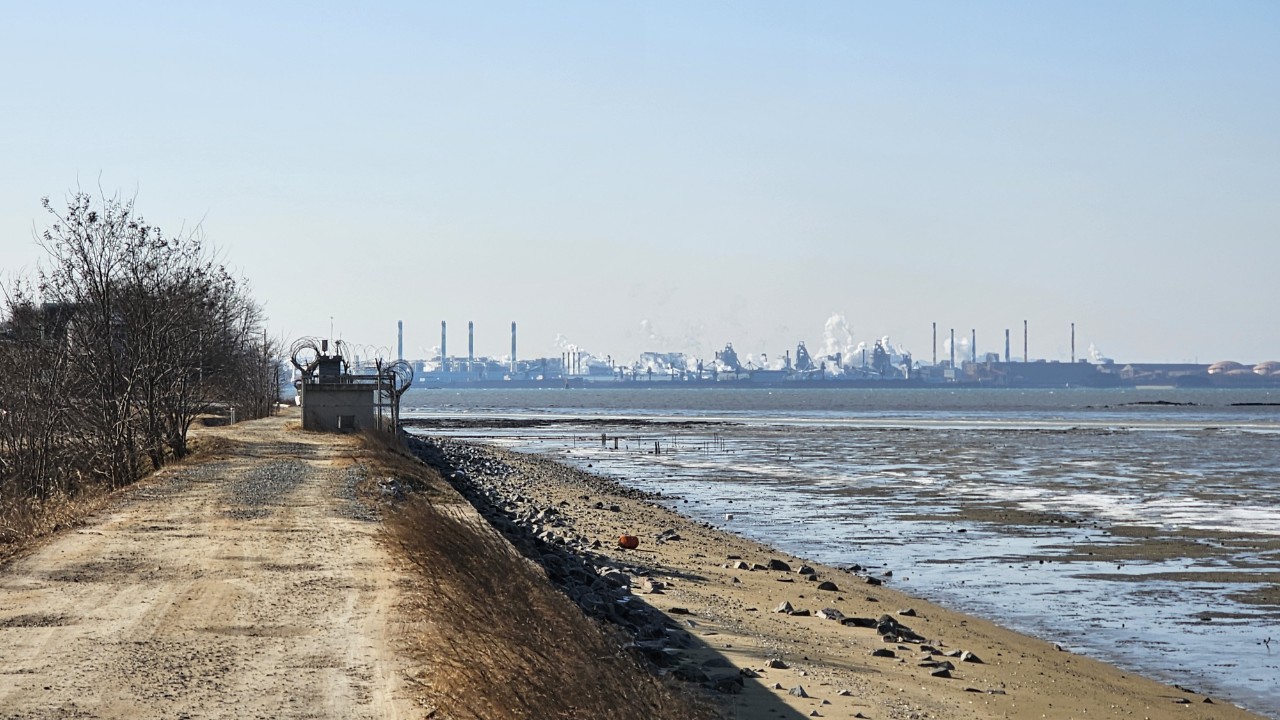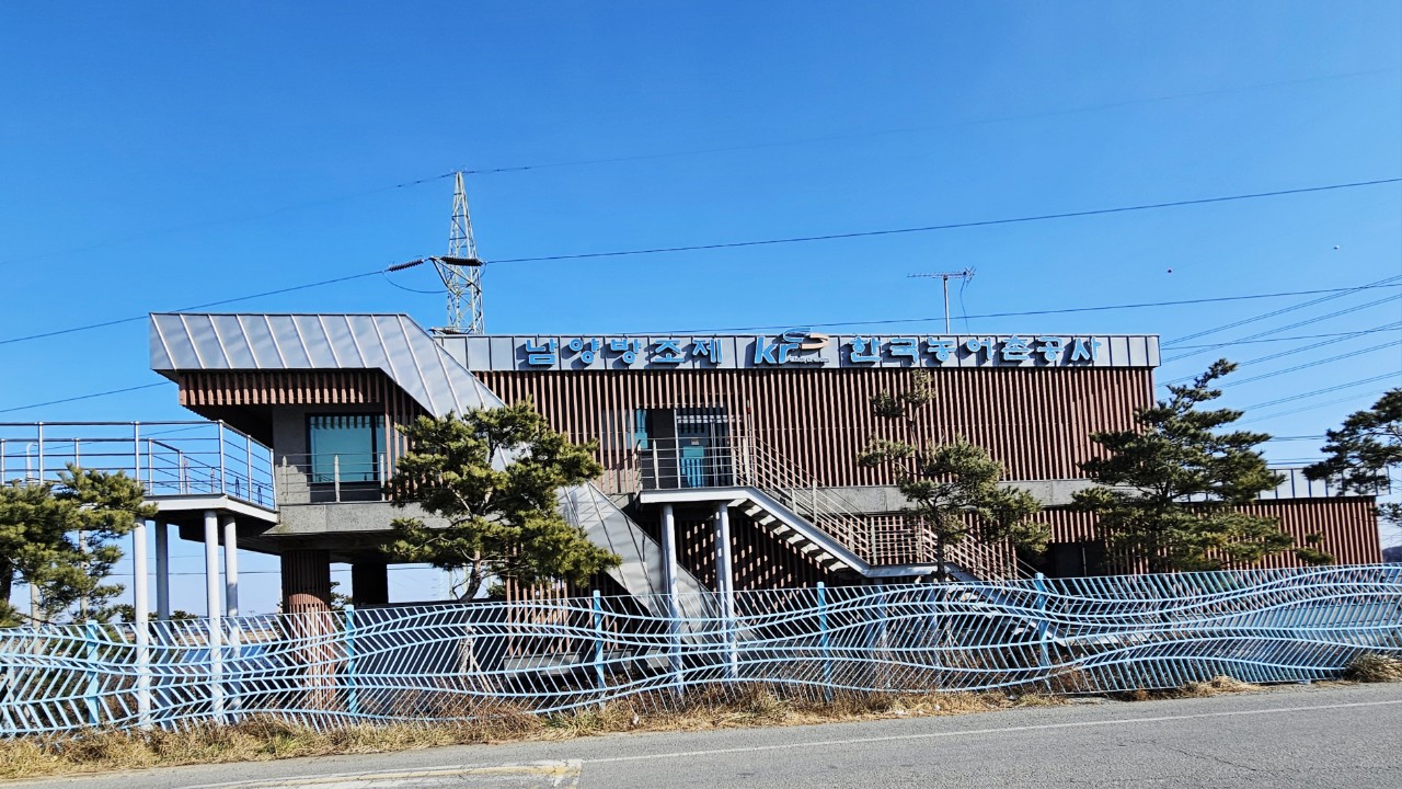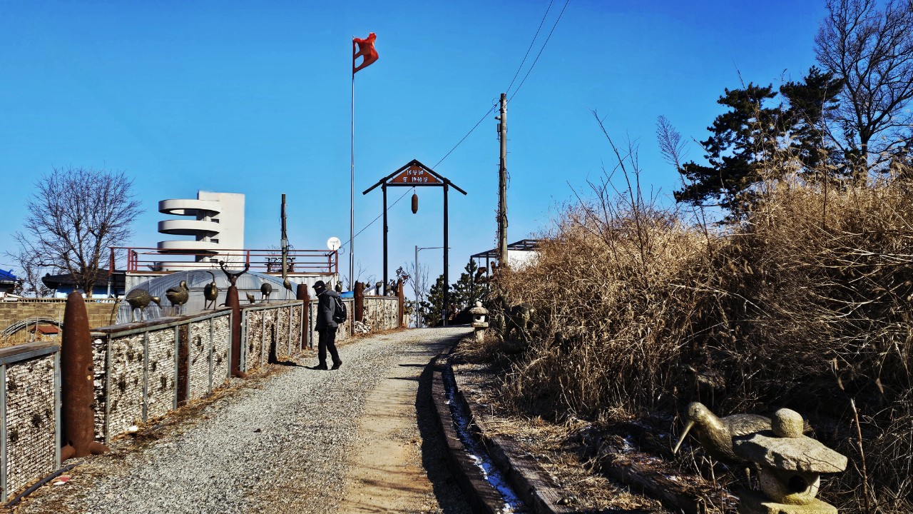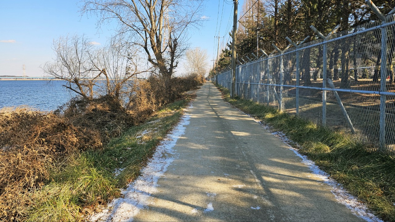 궁평항에서 시작하기엔 거리의 부담이 있어, 화성방조제 중간지점의 이동통신 안테나 앞에서 길을 시작한다. 버스에서 내리자마자 눈앞에 펼쳐진 것은 얼어붙은 화성호수. 겨울이 만든 고요한 수면 위로 스며드는 빛이 묘한 매력을 자아낸다. 차가운 풍경 속에서도 이상하게 마음은 차분해진다.