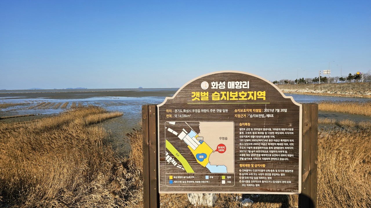 화성호는 매향리와 궁평리를 잇는 길이 9.81km의 화성방조제가 건설되며 만들어진 인공 해수호다. 인간의 손으로 빚어졌지만, 이제는 자연의 시간이 더 깊게 스며든 공간이 되었다. 특히 화성습지는 풍부한 먹이 자원을 품고 있어, 매년 봄과 가을이면 도요새를 비롯한 철새들이 쉬어 가는 중간 기착지이자 삶의 터전이 된다.
