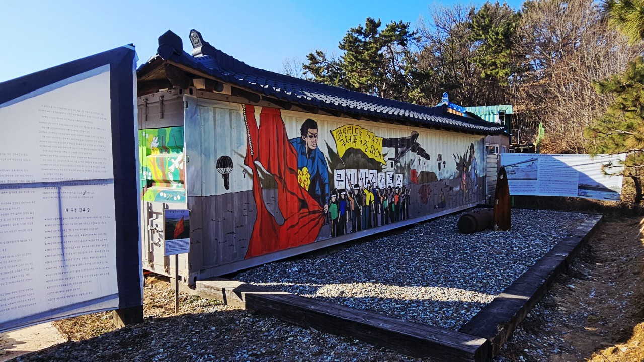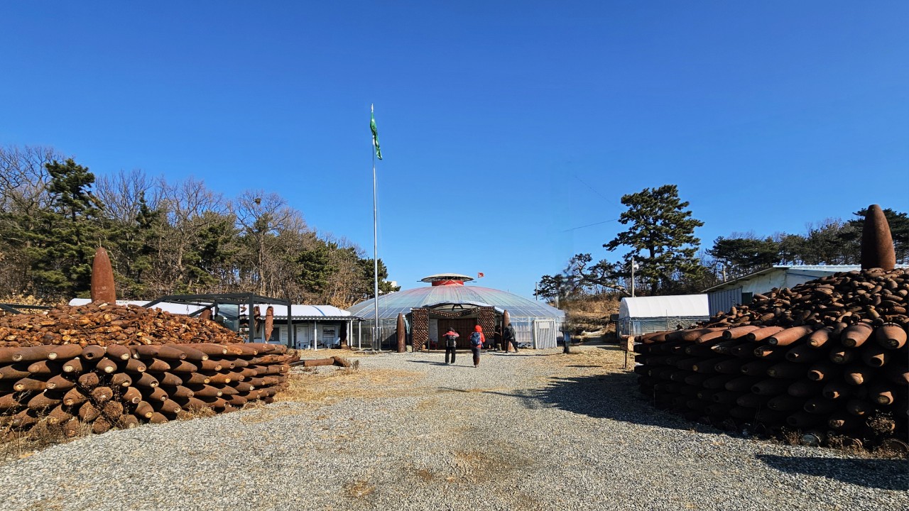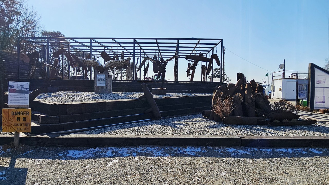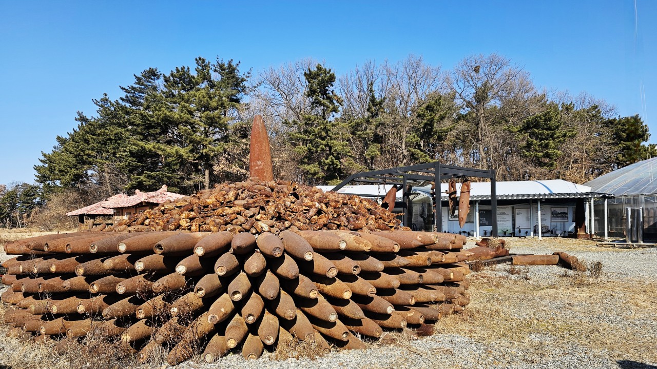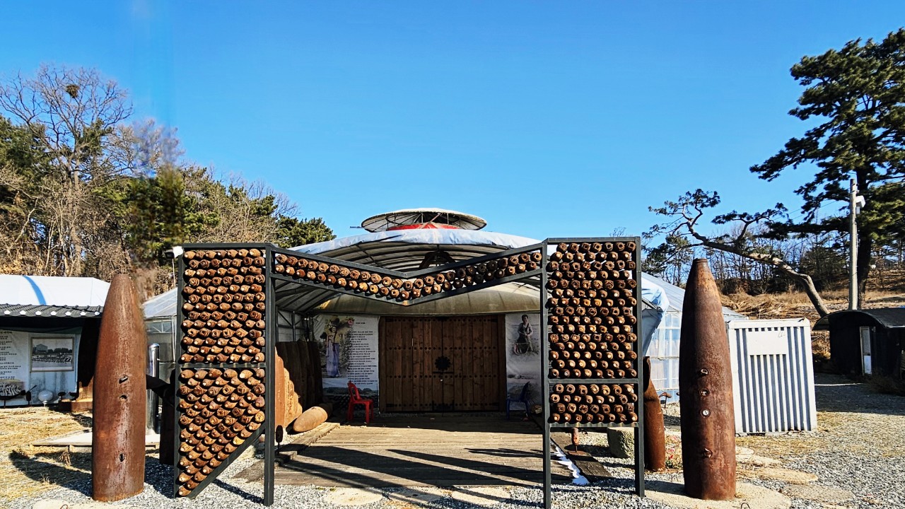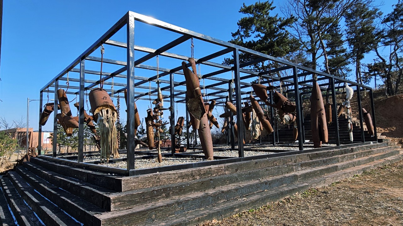 '푸줏간'이라는 이름의 작품 앞에 멈추게 된다. 이름부터 불편하다. 하지만 그 불편함이 바로 이 작품의 목적일지도 모른다. 전쟁과 폭격 속에서 삶이 얼마나 무참히 잘려 나갔는지를, 인간과 자연이 어떻게 희생되었는지를 적나라하게 떠올리게 한다. 한때 이 땅은 훈련이라는 이름 아래 생명과 일상이 무참히 해체되던 공간이었다. 작품 앞에 서면, 그 잔혹한 기억을 외면하지 말라는 무언의 메시지가 전해진다. 예술은 때로 위로보다 질문을 먼저 던진다. 이곳의 '푸줏간'은 그 질문을 가장 날카롭게 드러내는 공간이다.