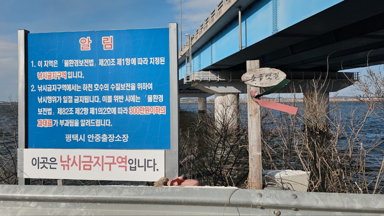 화성방조제를 벗어나자, 화성 매향리 갯벌 습지보호지역으로 외부인 어로 행위(해루질)를 금하고 있다.