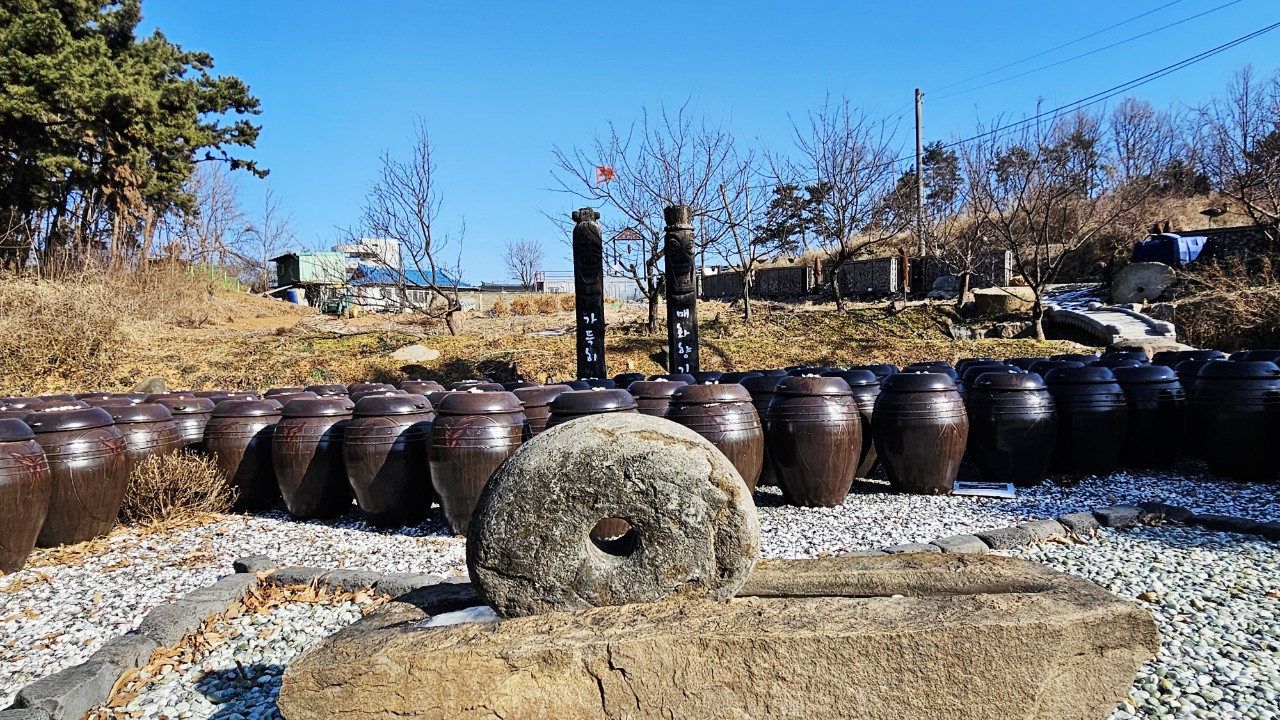 매화 4리 마을회관 앞을 지나 어느집 차고에 자리를 잡고 점심상을 펼친다. 지붕과 삼면은 가리막으로 둘러 겨울 찬바람을 막아주고, 입구 쪽으로는 따스한 햇빛이 깊숙이 스며든다. 차가운 계절 속에서도 빛과 온기가 머무는 공간이다. 찰밥, 시루떡, 뜨끈한 쌀국수와 컵라면 거기에 금산 인삼막걸리가 한 병 곁드려지니 행복한 시간이다.