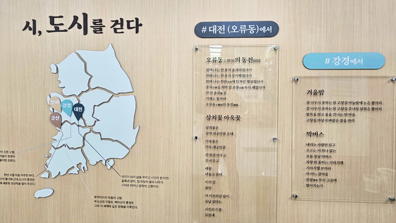 특별전은 박 시인의 연대기, 시인의 말, 시어 지도, 대표작 감상, 포토존 등 다양한 콘텐츠로 꾸며졌으며, 작품과 생애를 대전의 역사적 배경과 연결해 이해를 돕는 구성으로 소개됩니다.