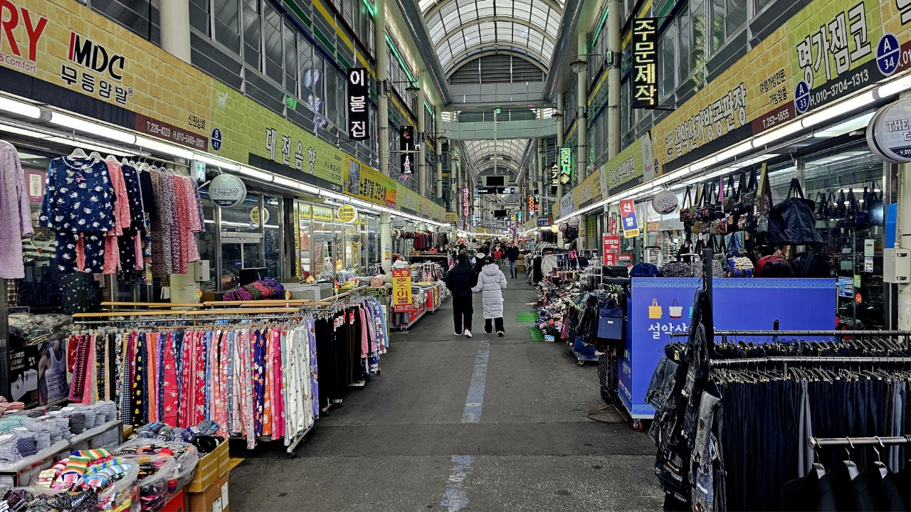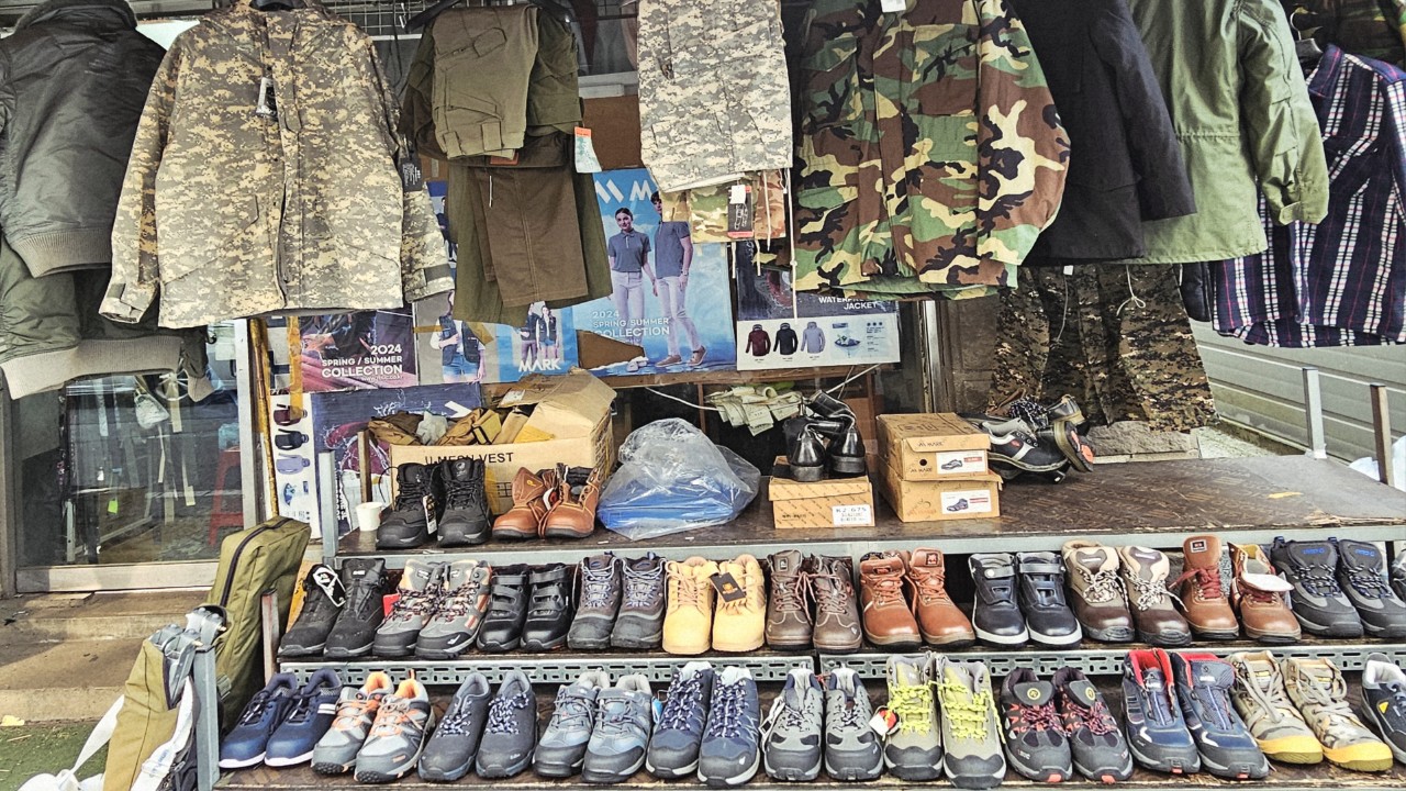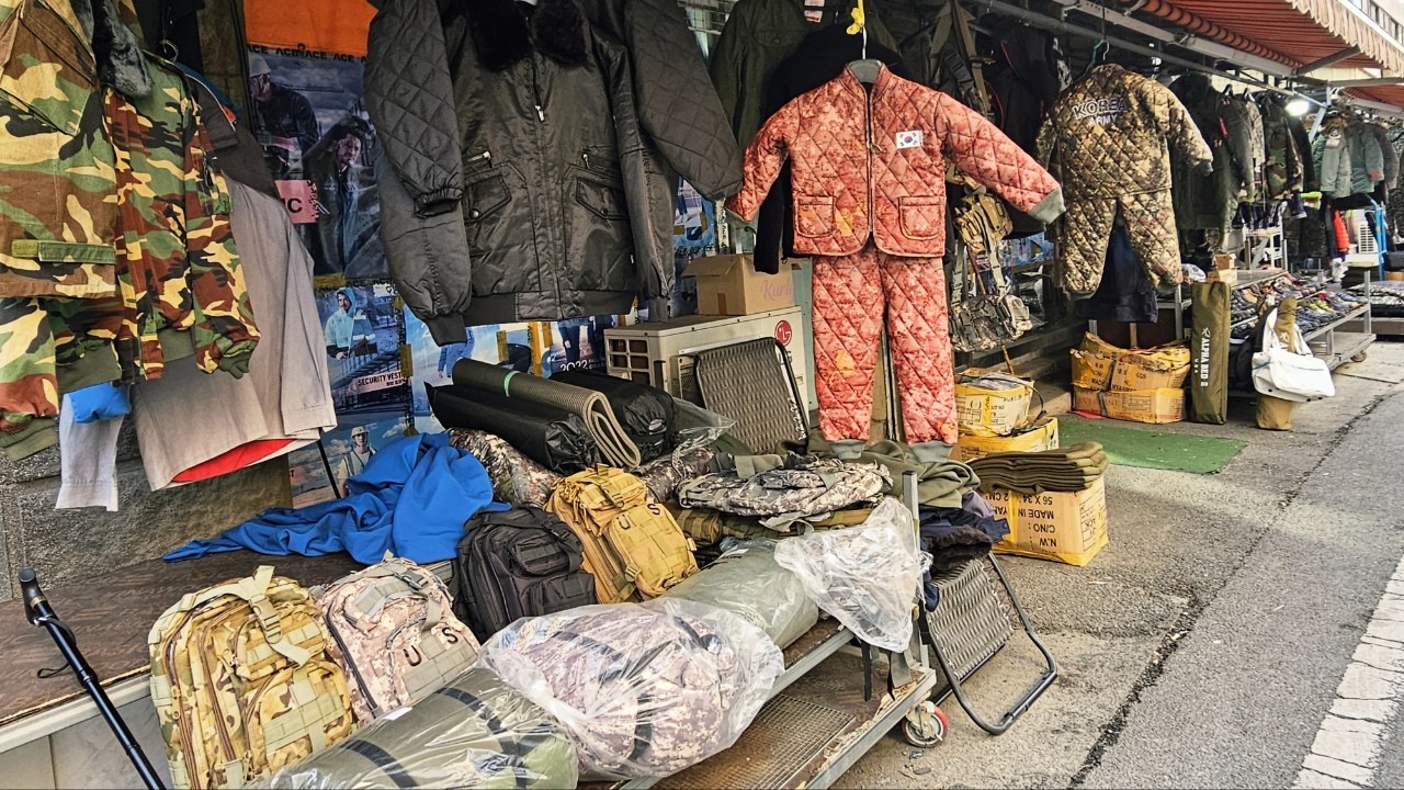 익숙한 재래시장 분위기 속에 밀리터리 룩의 색채가 자연스럽게 스며들어, 원동국제시장만의 독특한 매력을 완성한다.