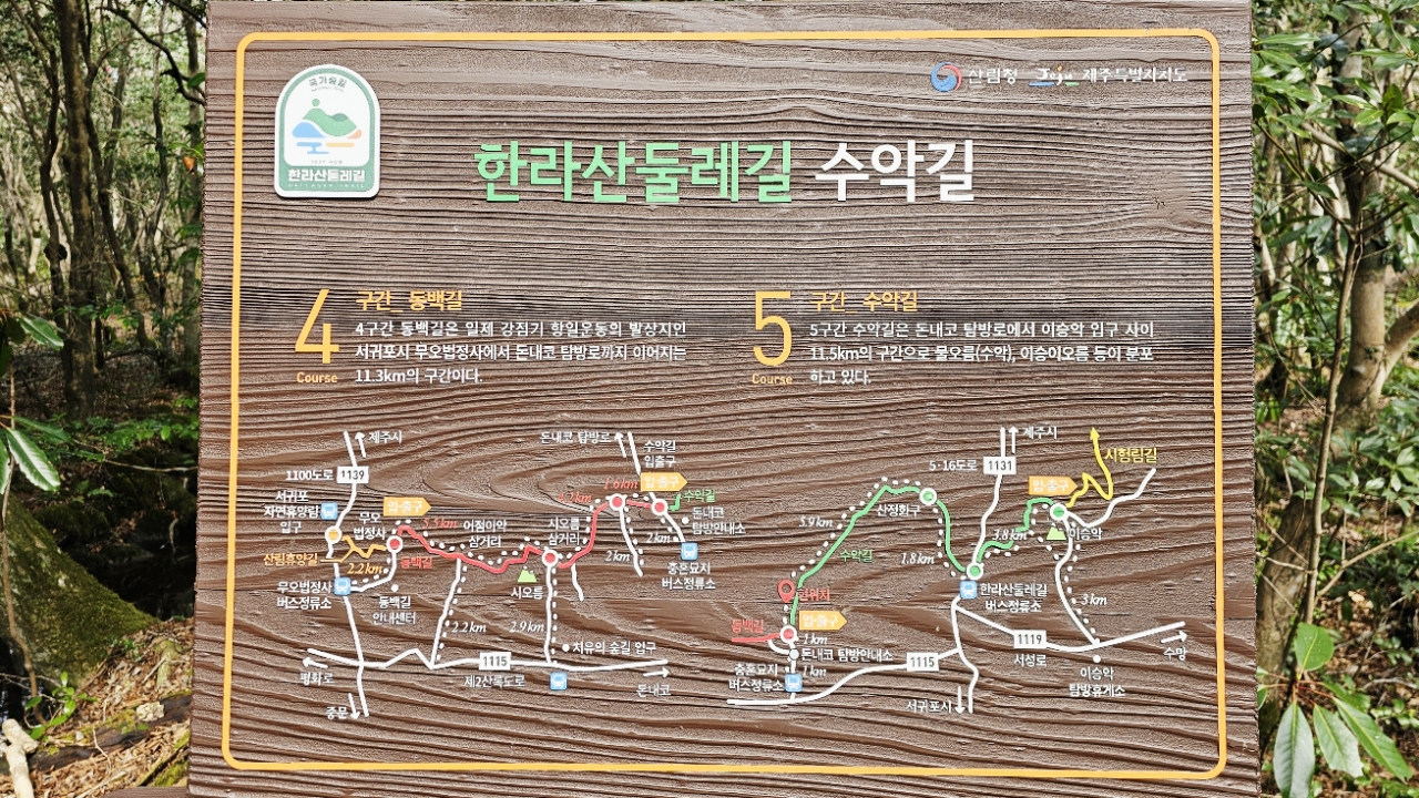 그중 한라산 둘레길 5구간 수악길은 돈내코 탐방 안내소에서 출발해 산정화구를 지나, 5·16도로를 건너 수악 인근을 거쳐 이승악까지 이어지는 약 11.5km로, 한라산 남사면 숲의 깊이를 가장 차분하게 느낄 수 있는 길 가운데 하나다.