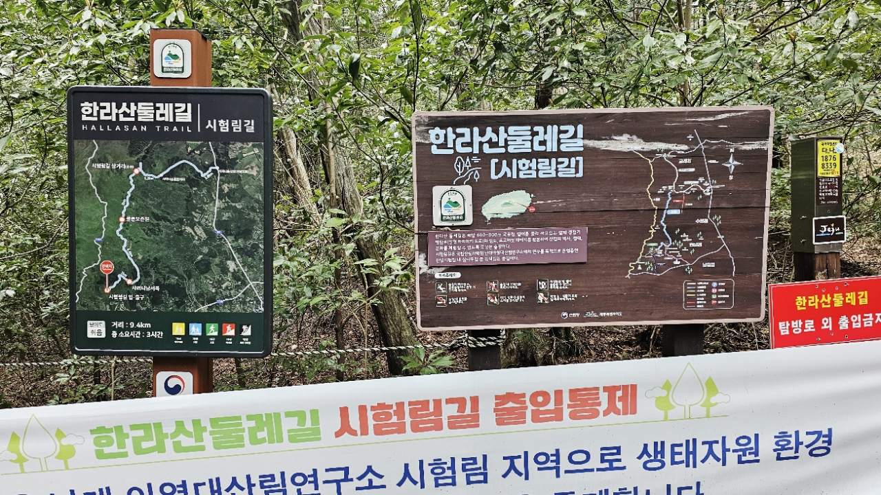 숲길을 빠져나오자, 한라산둘레길 6구간 시험림길 입구가 나타난다.