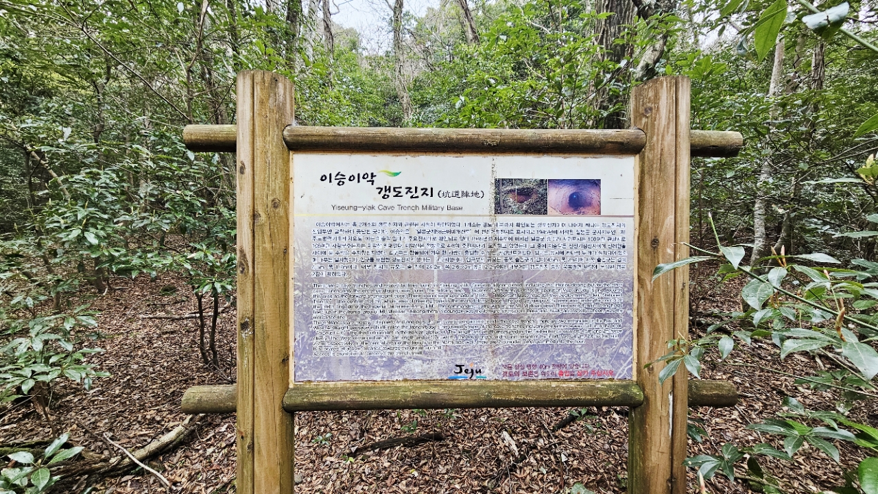 이승이악 일대에는 일제강점기 말에 조성된 갱도진지의 흔적이 남아 있다. 숲의 고요 속에 묻힌 전쟁의 흔적은, 평화로운 풍경일수록 더 큰 대비로 다가온다.