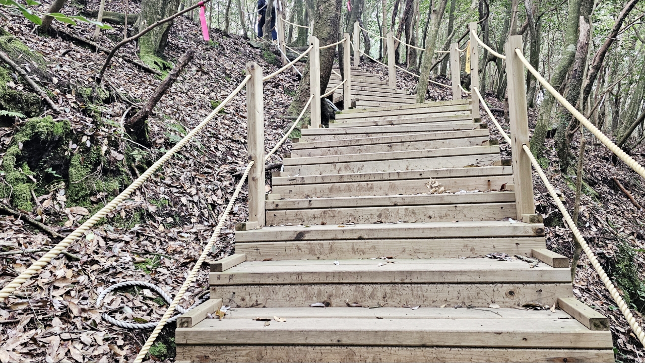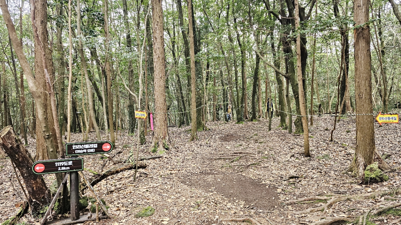 차들이 오가던 도로의 소란은 금세 멀어지고, 다시 나무와 바람, 흙길의 감촉이 걸음 곁으로 돌아온다. 마치 잠깐 현실로 나왔다가 다시 한라산의 품 안으로 들어가는 느낌이다.