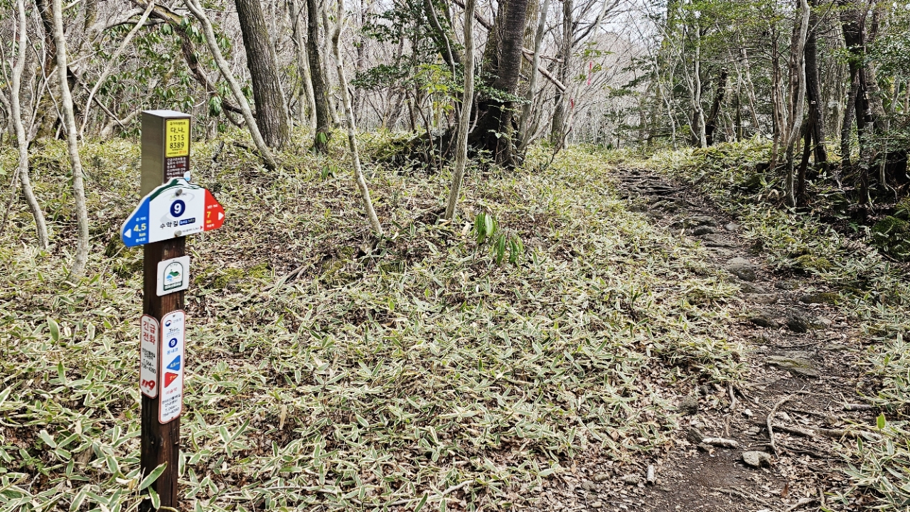하늘 끝까지 닿을 듯 곧게 뻗은 삼나무 숲길은 짙은 숲의 기운이 한층 더 깊어지는 구간이다.