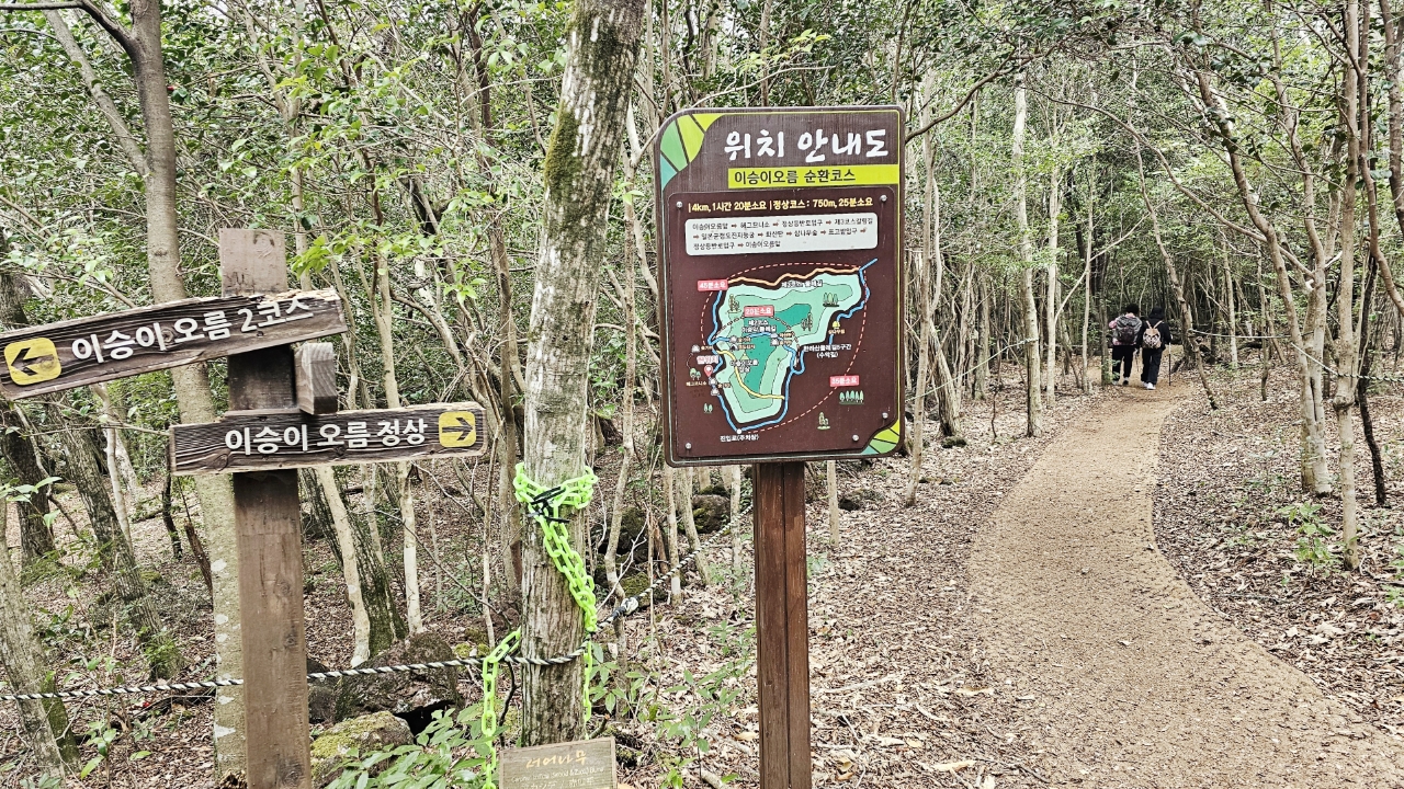 마침내 이승이오름 탐방 안내도 앞에 도착하며 한라산 둘레길 5코스 수악길의 여정을 마무리한다. 조용한 숲과 계곡, 시간의 흔적을 따라 걸어온 길이 마음속에 잔잔한 여운으로 남는다.