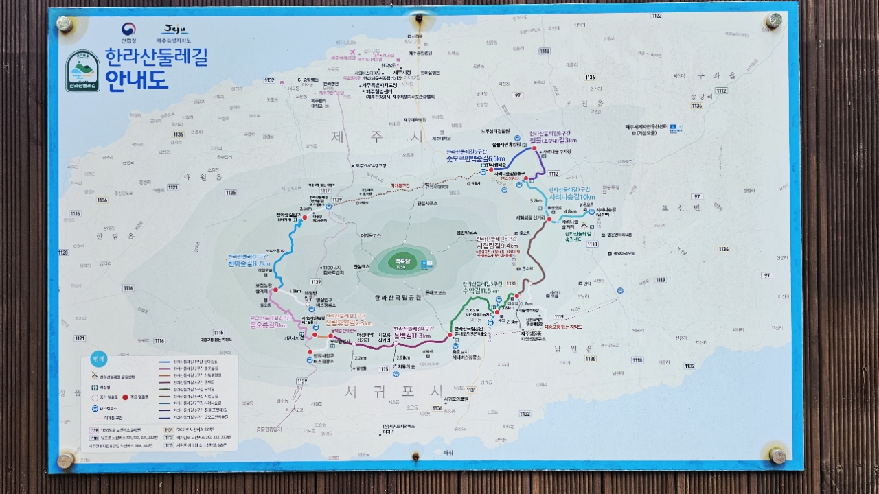 한라산둘레길은 한라산 중산간을 따라 조성된 총 9개 구간의 탐방로로, 전체 길이는 약 80km다.