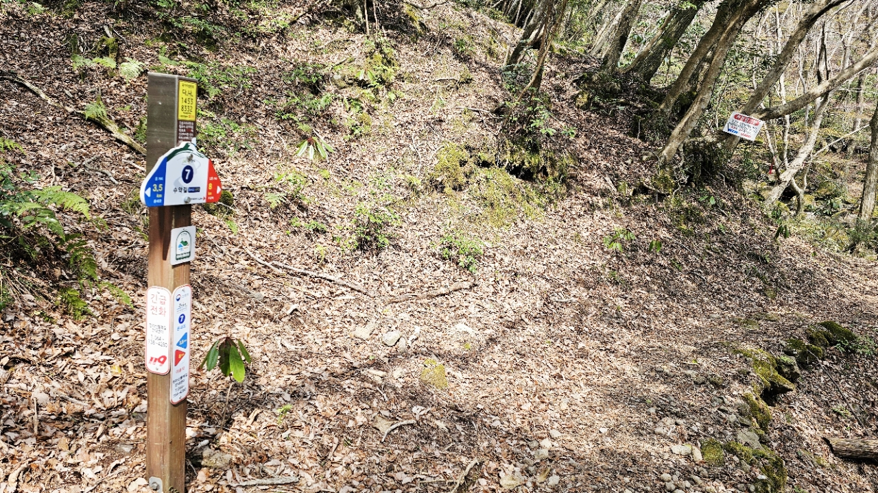 이승악방면 수악길로 들어선다. 잠시 끊겼던 숲의 호흡이 다시 이어진다.